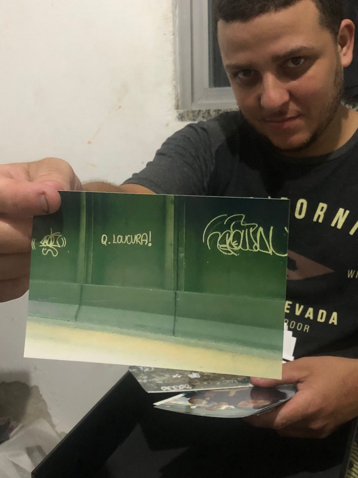 Yes. I take pictures of the actions, buildings, and different siglas, pixadores, and pixadoras. But this is my personal collection, which I like to keep. Here’s me and Sunk. Me and Kim. And me alone.