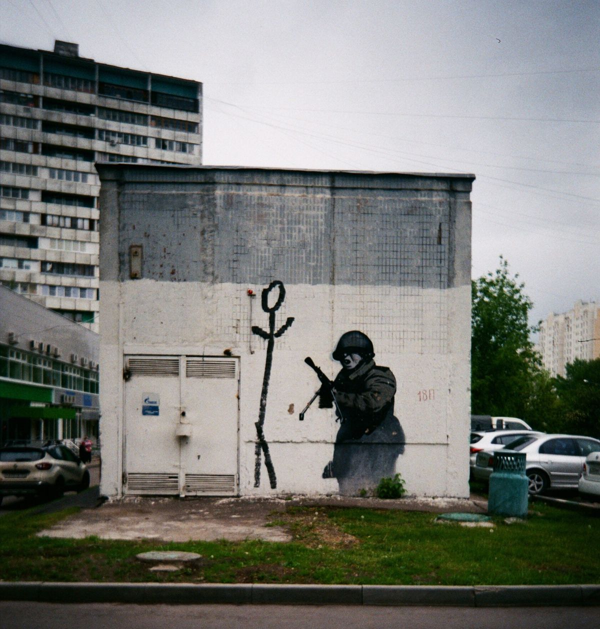 A series of analogue photographs of bare walls constitutes ‘Graffiti Pieces I Never Did’ (2021). These are essentially images of absence, records of something as transcendental as thought and intention rather than the visual (Figure 2). OK imbues in them a sense of being an in between space, at once evoking melancholy, while waiting for something that will not come – or even if it does, that will likely be removed immediately, as per a Moscow law that owners will be fined if they do not remove graffiti from their buildings (Bacchi, 2019). Of course, the concept is very much about the inspiration to do something and the opportunity not taken, a nod to the common thought among street artists before a large, blank wall that ‘this would be such a cool place to paint’, but often never getting around to it. By documenting these spaces, OK converts this sentiment into something intentional, describing it almost as ‘striving to fail’ (OK interview, 2022), whereby he has noted the blank building, but chooses instead to immortalise it in this peak state of imminency, leaving the action unfulfilled.