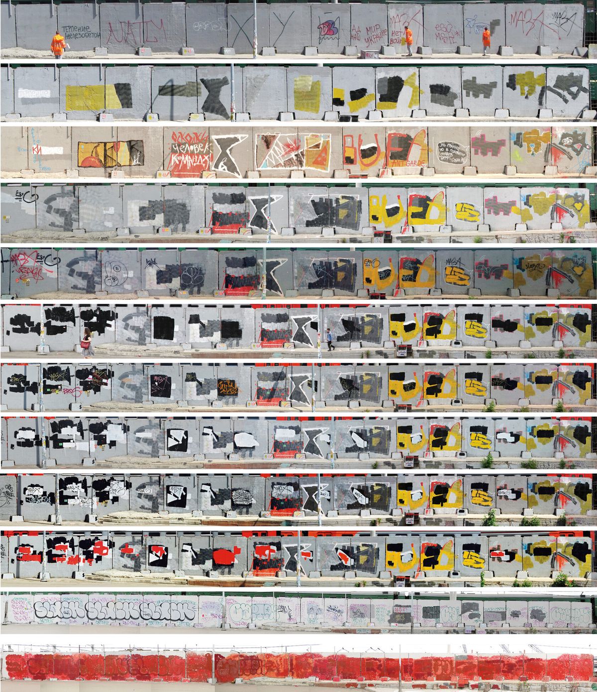 An illuminating portal into OK's practice is a hitherto unknown anecdote from what is perhaps his most known project to date, ‘Kurskaya Wall’, because it synthesises so much of his modus operandi. While hiding in plain sight under the guise of being a council worker buffing over graffiti on a wall at Moscow Kursky railway station in May 2015 (Figure 1), OK was approached by an onlooker suspicious at his use of bright, unmatched colours for the task, rather than the staid greys and beiges of usual council fare. Believing he had indeed caught out an artist at work, the man asked OK if he would paint over his initials if he added them to the wall, and to his surprise, OK kept his cover – at once street art, performance, and appropriated labour – and did just that. However, this led him to feel that for removing the physical manifestation of this man's energy, he owed it to him to revive it elsewhere. This occasion came when OK moved to his residency at St. Petersburg's Street Art Museum, where he reproduced the man's tag in the space's ‘hall of fame’, proclaiming it was that of a famous yet mysterious Moscow artist.