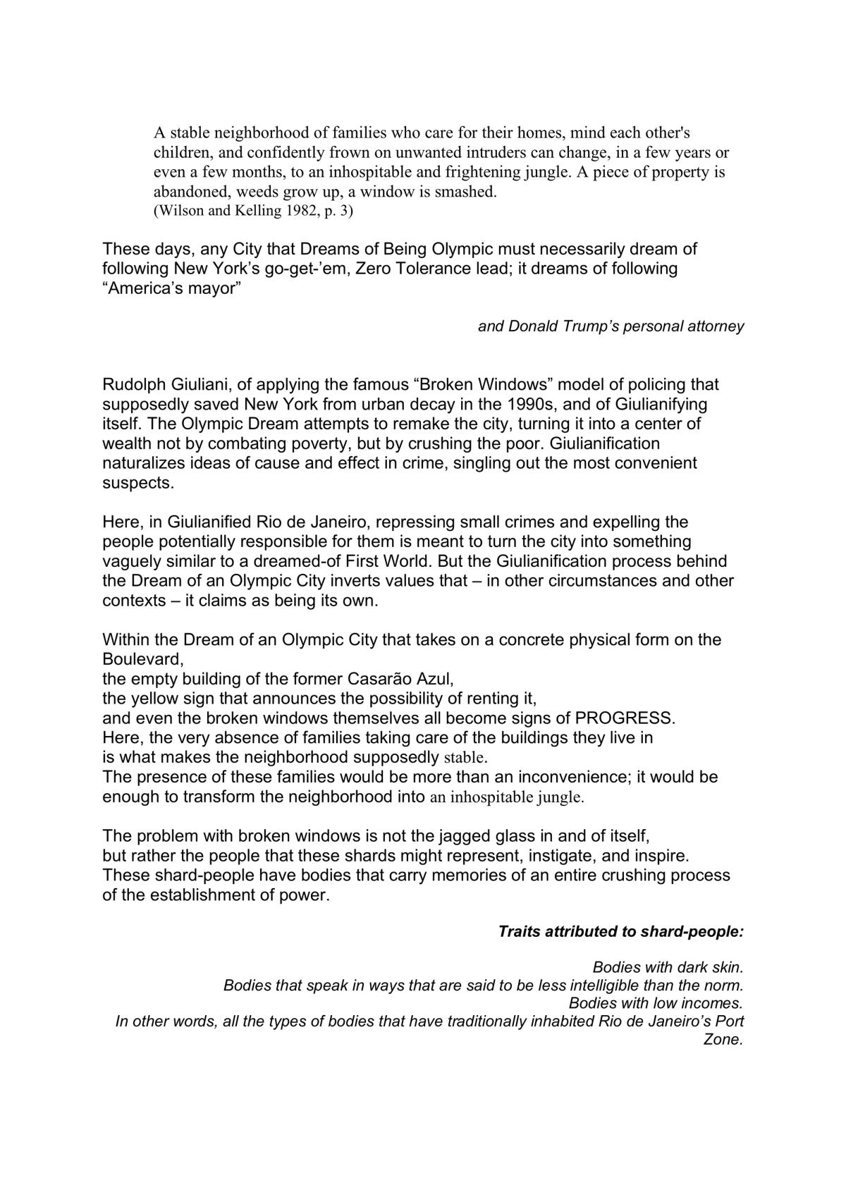 Giuliani, R. (1998) The Next Phase of Quality of Life: Creating a More Civil City. Public Address. February 24, 1998. [Online] http://home.nyc.gov/html/records/rwg/html/98a/quality.html (cited in Harcourt, B. (2001) Illusion of Order: The False Promises of Broken Windows Policing. Cambridge, USA: Harvard University Press: 185-6)